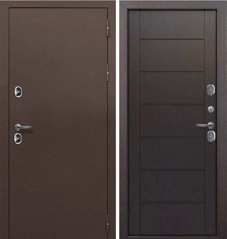 Входная дверь с применением технологии терморазрыва имеет конструкция, при которой металл с внутренней стороны двери не соприкасается с металлом стороны внешней (за счет двухкамерной термовставки), что препятствует появлению наледи и исключает промерзание*.