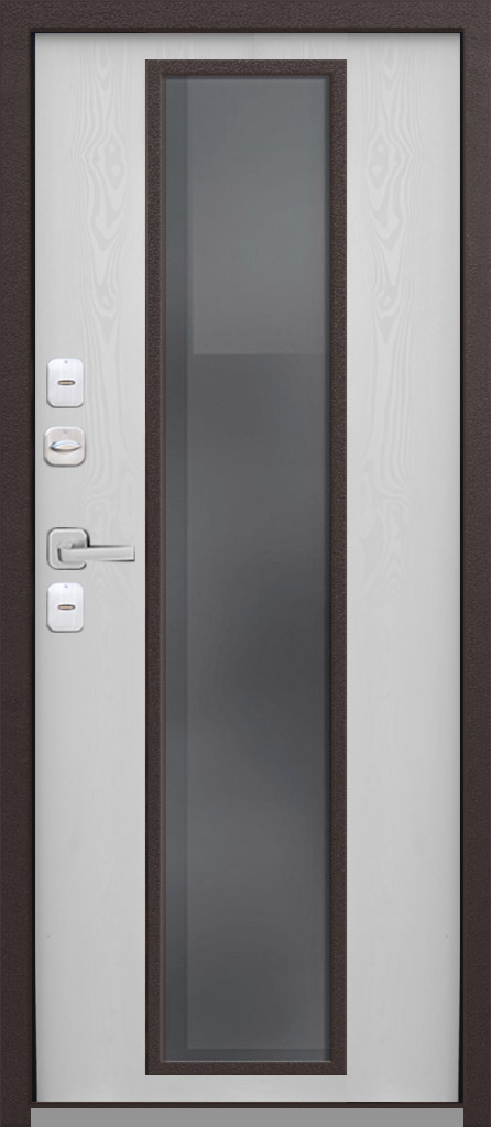 • Ударопрочный порог из нержавеющей стали придает двери солидный вид, защищая короб от механического воздействия. В этой модели мы используем сувальдные замоки Sezam 103,101 – надежные, с защитой от вскрытия отмычкой.