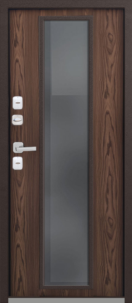 Входная дверь с применением технологии терморазрыва имеет конструкция, при которой металл с внутренней стороны двери не соприкасается с металлом стороны внешней (за счет двухкамерной термовставки), что препятствует появлению наледи и исключает промерзание*.
