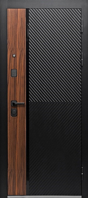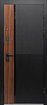 | Внешняя отделка: | МДФ-панель 12 мм., орех каньон коньяк, сатин черный, наличник сатин черный. вставка - черный лакобель |