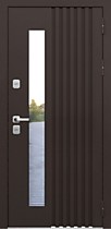 | Внешняя отделка: | ral 8019 муар с блестками, металлические рейки на полотне, стеклопакет: 4 камеры, 96 мм, тонированный «Серебро» |