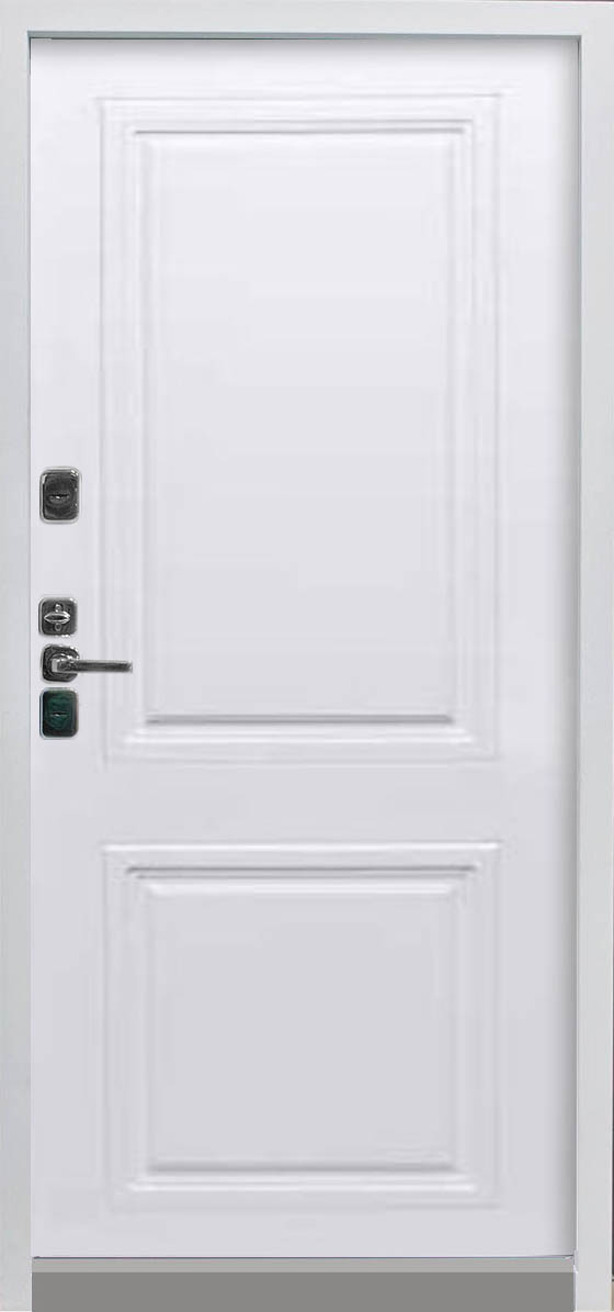 Входная дверь с применением технологии терморазрыва имеет конструкция, при которой металл с внутренней стороны двери не соприкасается с металлом стороны внешней (за счет двухкамерной термовставки), что препятствует появлению наледи и исключает промерзание*.