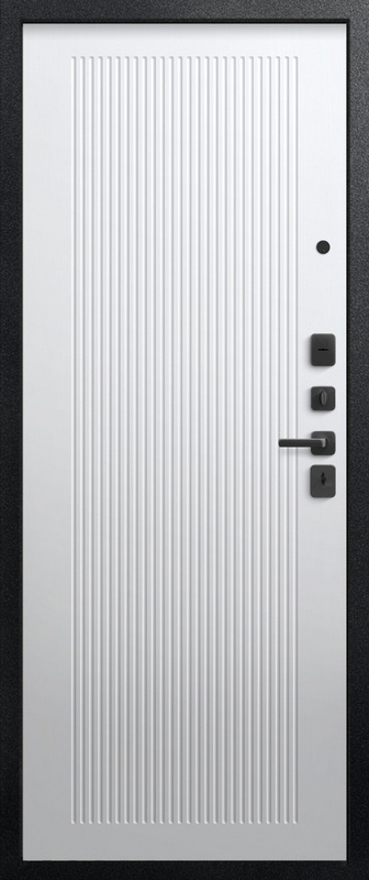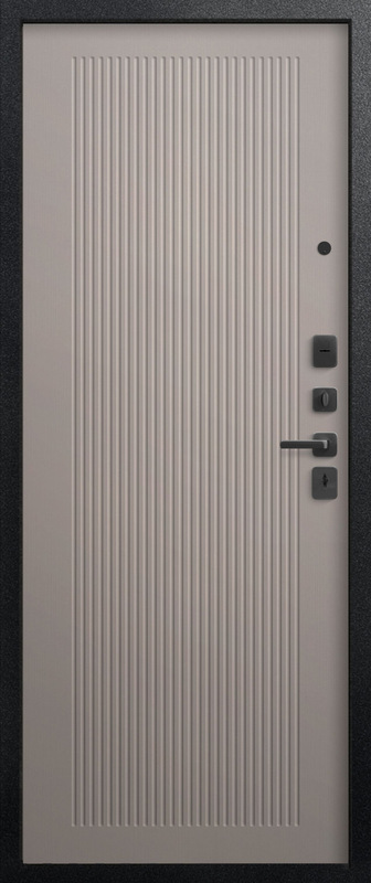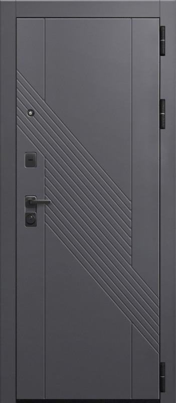 - Эта модель имеет дизайнерскую внешнюю панель. Рисунок на МДФ – лаконичный, что позволяет двери вписаться в любой интерьер. При отличных технических характеристиках у нее стильный внешний вид.